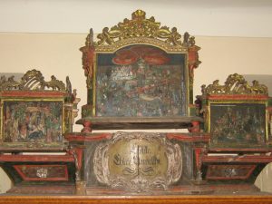 - Skvostnou a působivou památkou na existenci cechů v našem městě je vzácný bohatě vyřezávaný barokní oltář cechu ševcovského (inv. č. B-4) z roku 1794 o rozměrech 140 x 90 cm, na jehož soklu je v kartuši uprostřed ozdobně napsáno „Ejhle CHleb Anjelský“. Skládá se ze třech prosklených skříněk s biblickými výjevy a motivem narození Páně. Díky této scenérii lze zmíněný unikátní soubor zároveň považovat za nejstarší exponát v kolekci betlémů ve sbírkách naší instituce.