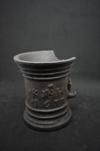 - Nejstarším dochovaným třírozměrným exponátem spojeným s lomnickými cechy je železný hmoždíř s emblémem řeznického cechu z roku 1652 s iniciály K. H. (inv. č. ND – 91). A víte, jak se dostal lev do řeznického znaku? K této skutečnosti se vztahuje zajímavá historická událost. Stalo se tak 3. prosince roku 1310, kdy řemeslníci pomohli vojsku Jana Lucemburského dostat se do hlavního města, které tehdy držel Jindřich Korutanský. Pražští řezníci pod vedením mistra svého cechu, ozbrojeni jen řeznickými sekerami, rozehnali korutanské stráže, rozbili městskou bránu u kláštera sv. Františka a vpustili krále Jana do města. Vděčný panovník je za to patřičně odměnil. Získali právo pochodovat při všech oslavách v čele průvodu hned za královskými a městskými praporci. Dostali také novou korouhev a cechovní znak – stříbrného lva na červeném poli. V roce 1437 jim král Zikmund povolil dát si do znaku českého dvouocasého lva s korunou na hlavě a v 16. století již lev v polepšeném znaku drží mezi tlapami řeznickou sekeru. I později byly různá privilegia a výsady řeznického cechu potvrzovány dalšími panovníky.
